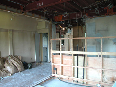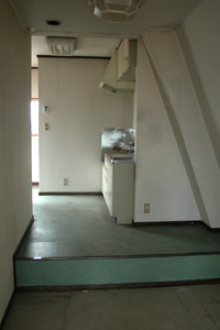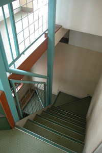 ![]() 階段室。壁をぶちぬいてサンルームに。 |