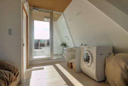 ![]() 3F寝室とデッキテラスをつなぐ開放的なバスルーム。 |