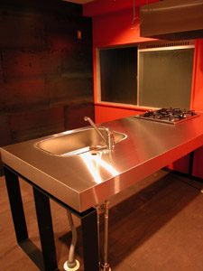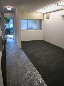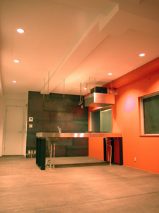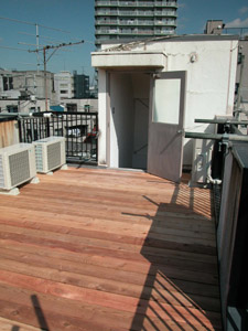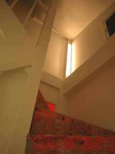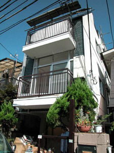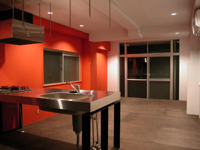 | N邸 リノベーション N's house conversion + renovation 2005 東京都中野南台に位置する築27年の鉄骨3階建てオフィスビルから住居へのコンバージョン。1階をSOHOスペース、2階にムーディなLDK、3階には屋根裏部屋風の明るい寝室とシームレスな浴室洗面所、屋上にデッキテラスを設けました。プランはごくシンプルですが、3層ごとに自然光や機能の違いに応じて3つの床材をチョイスし、3フロアそれぞれ違う表情を出しています。1.8mの既存扉を双子のように再利用したり、鉄骨錆び止めそのまま仕上げた荒々しい階段室、いろいろな時間や環境が積層する住まいは、マンションとはまた違った住まい方を誘発する重箱です。 |
