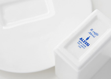 僅かに浮いているようにデザインされたソーサーが直方体のカップのかたちを強調させています。